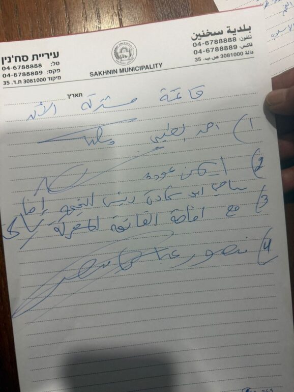 وبحسب منظّمي الاجتماع، بادر الناشط علي زبيدات—الذي قاد إغلاقًا تجاريًا وإضرابًا عامًا سبق المظاهرة—إلى دفع قادة الأحزاب للتوقيع، وسط تصفيق وهتافات داعمة من الحضور.