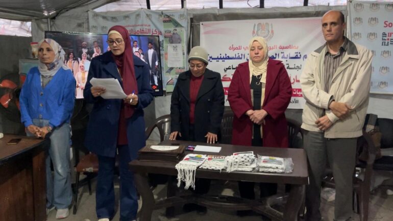 ووجهت الأستاذة نهى البحيصي مسؤولة الاتحاد العام للمرأة الفلسطينية في المحافظات الجنوبية التحية للصحفيات الفلسطينيات اللواتي قدمن التضحيات الكبيرة من أجل أن تظل التغطية مستمرة.