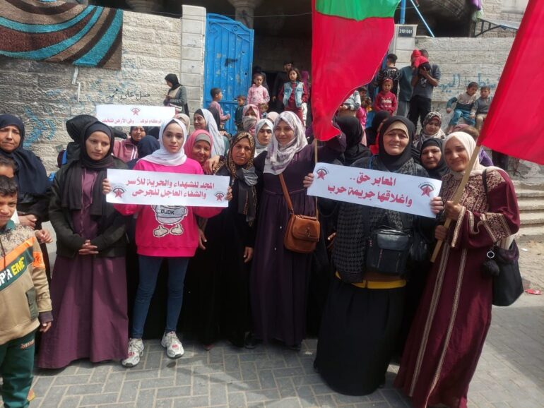 وانطلقت المسيرة من أمام مستشفى اليمن السعيد باتجاه عيادة الفاخورة التابعة لوكالة غوث وتشغيل اللاجئين الفلسطينيين (الأونروا) في مخيم جباليا، حيث رفع المشاركون الأعلام الفلسطينية ورايات الجبهة الديمقراطية، مرددين هتافات منددة باستمرار الحرب في قطاع غزة وما خلفته من دمار واسع.