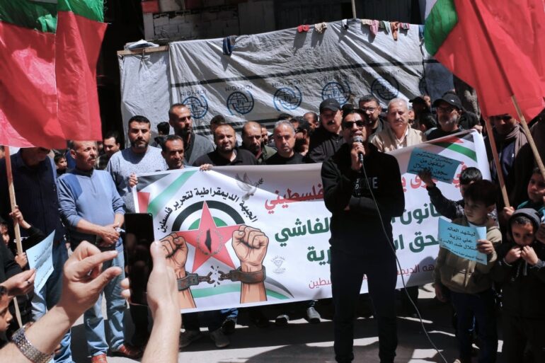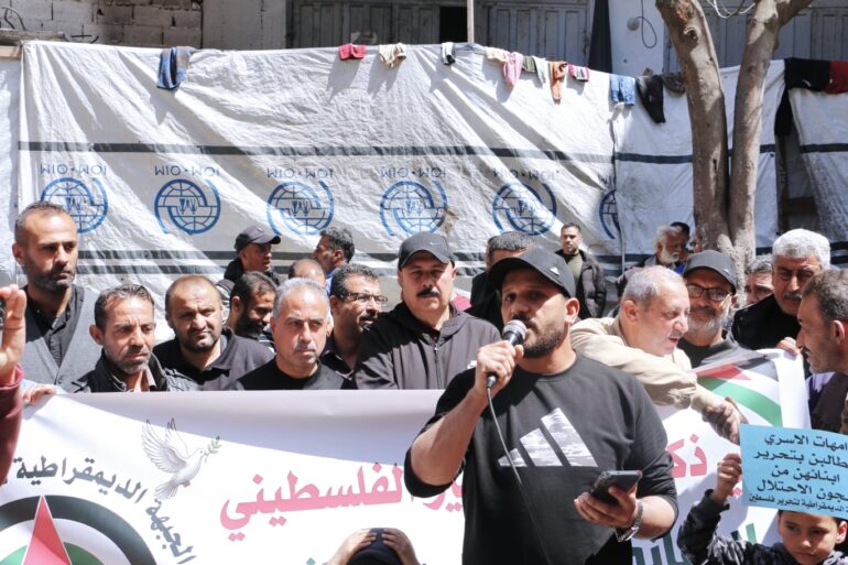 وخلال الفعالية، ألقى عضو فرع الشاطئ في الجبهة الديمقراطية، القيادي مصطفى تيم، كلمة أكد فيها أن إحياء يوم الأسير الفلسطيني، الذي يصادف السابع عشر من نيسان من كل عام، يأتي تأكيدًا على الوقوف إلى جانب الأسرى في ظل ما وصفه بـ«حالة القمع والإرهاب المنظم» التي تمارسها سلطات الاحتلال بحقهم.
