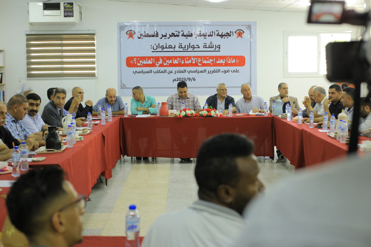 نظمت الجبهة الديمقراطية لتحرير فلسطين، اليوم الأربعاء، ورشة حوارية لمناقشة الورقة السياسية الصادرة عن مكتبها السياسي والمعنونة بـ«ماذا بعد اجتماع الأمناء العامين؟»، وذلك في قاعة مكتب اتحاد الشباب الديمقراطي الفلسطيني «أشد» بمدينة غزة.