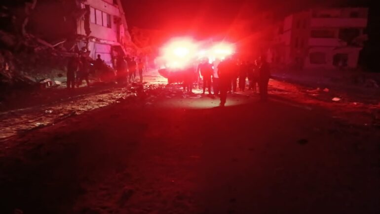 ونقلت طواقم الإسعاف التابعة لجمعية الهلال الأحمر الفلسطيني قبل قليل خمسة شهداء إلى مستشفى الأمل في خان يونس، عقب قصف استهدف مركبة مدنية في شارع القسام بالمدينة.